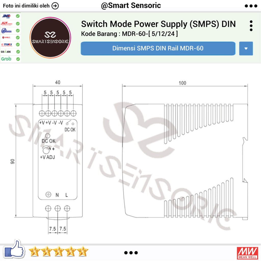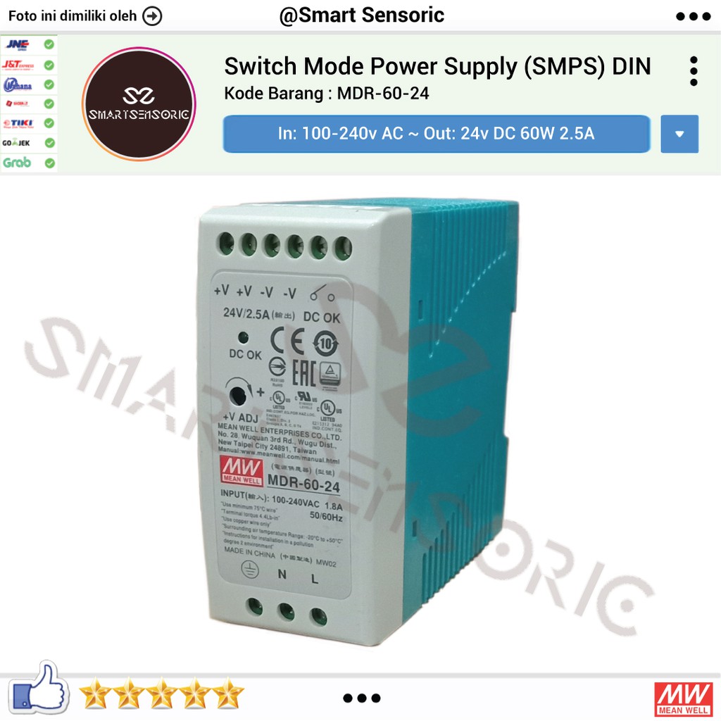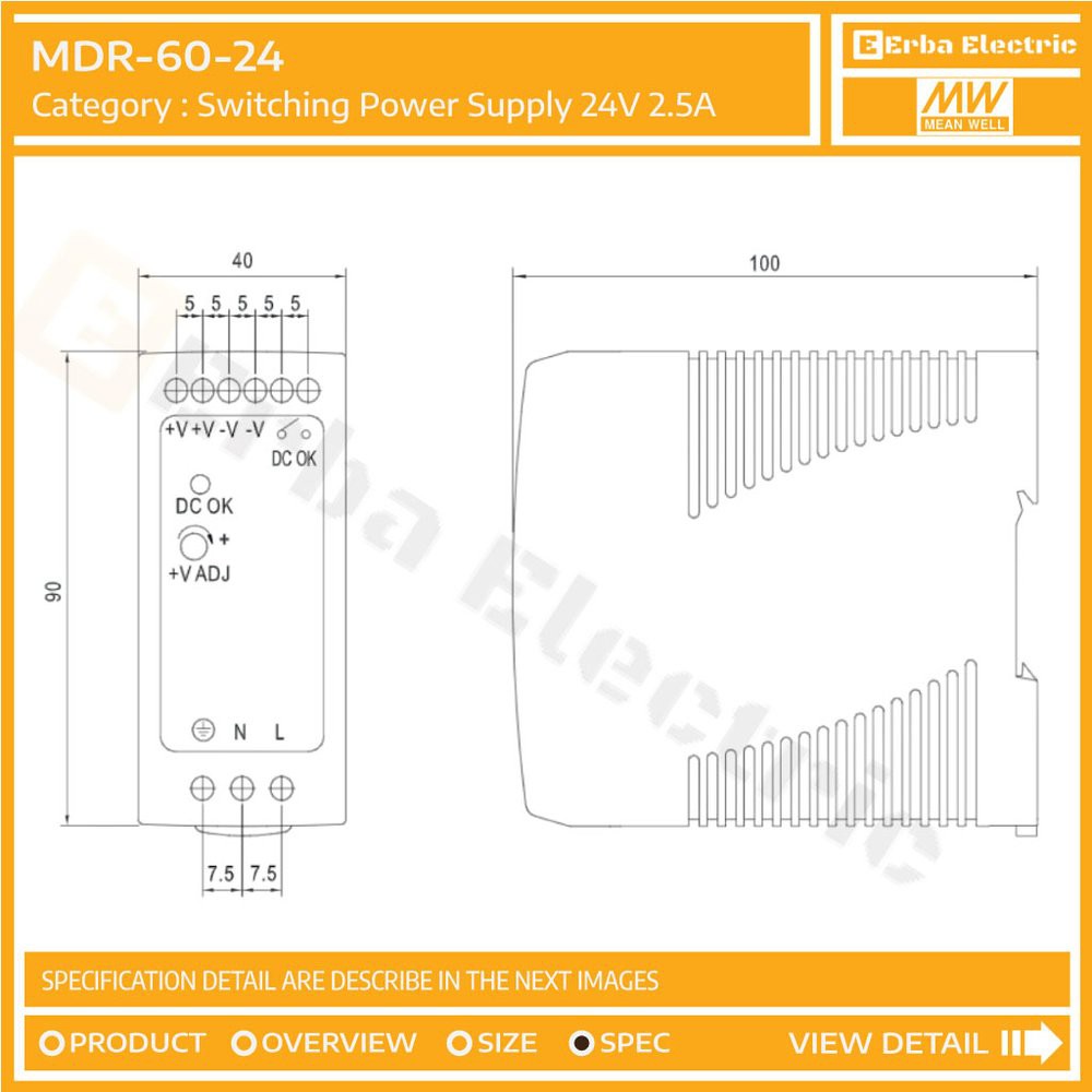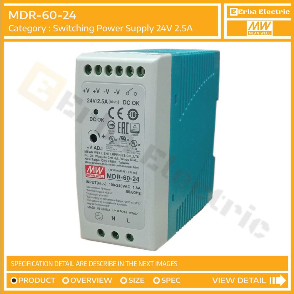 Meanwell Mdr 60 24 Switching Power Supply 24v 2 5a Adaptor Din Mdr Sp Shopee Indonesia