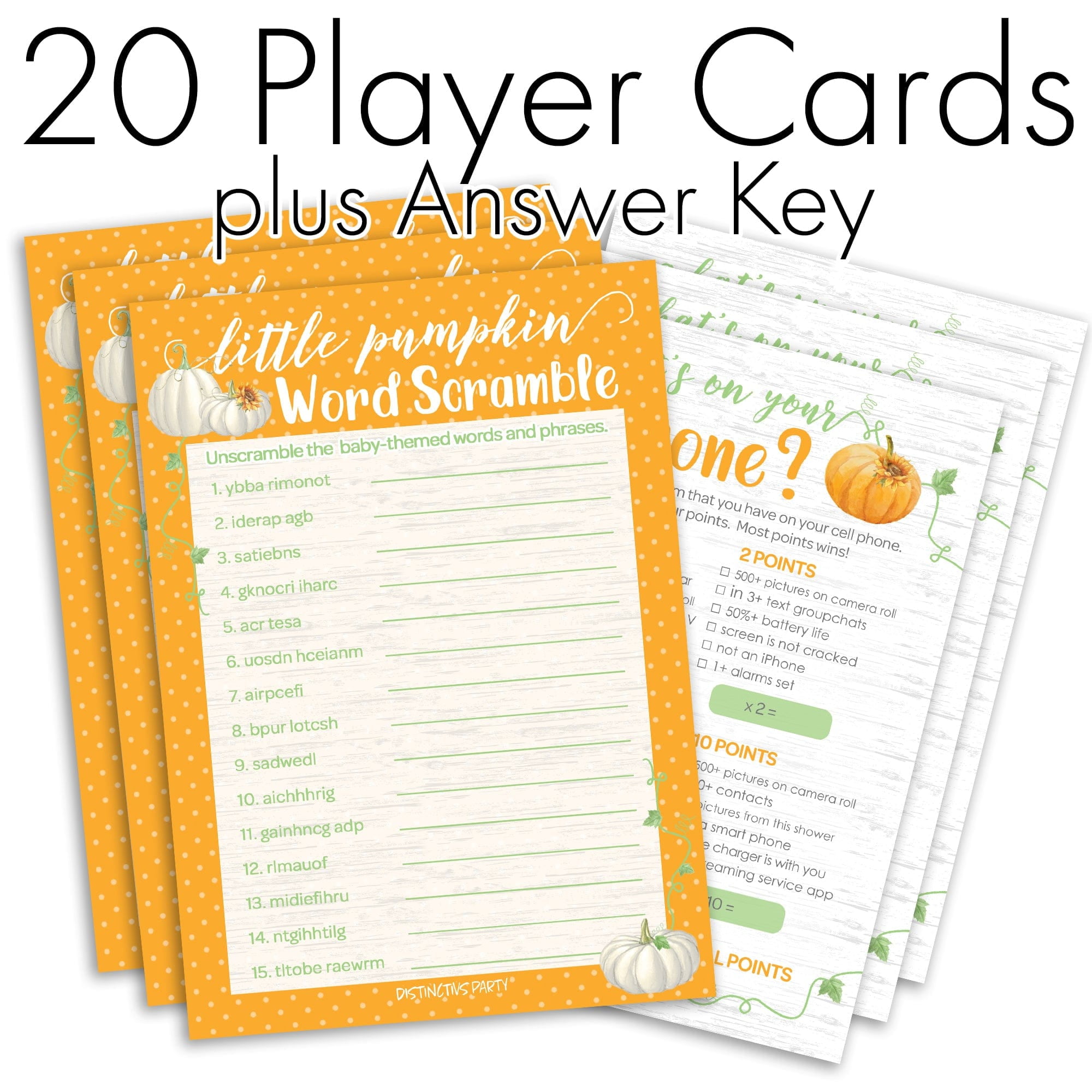 Classic Orange Little Pumpkin Baby Shower 2 Game Bundle What S On Your Phone And Word Scramble Party Activity 20 Dual Sided Cards Walmart Com