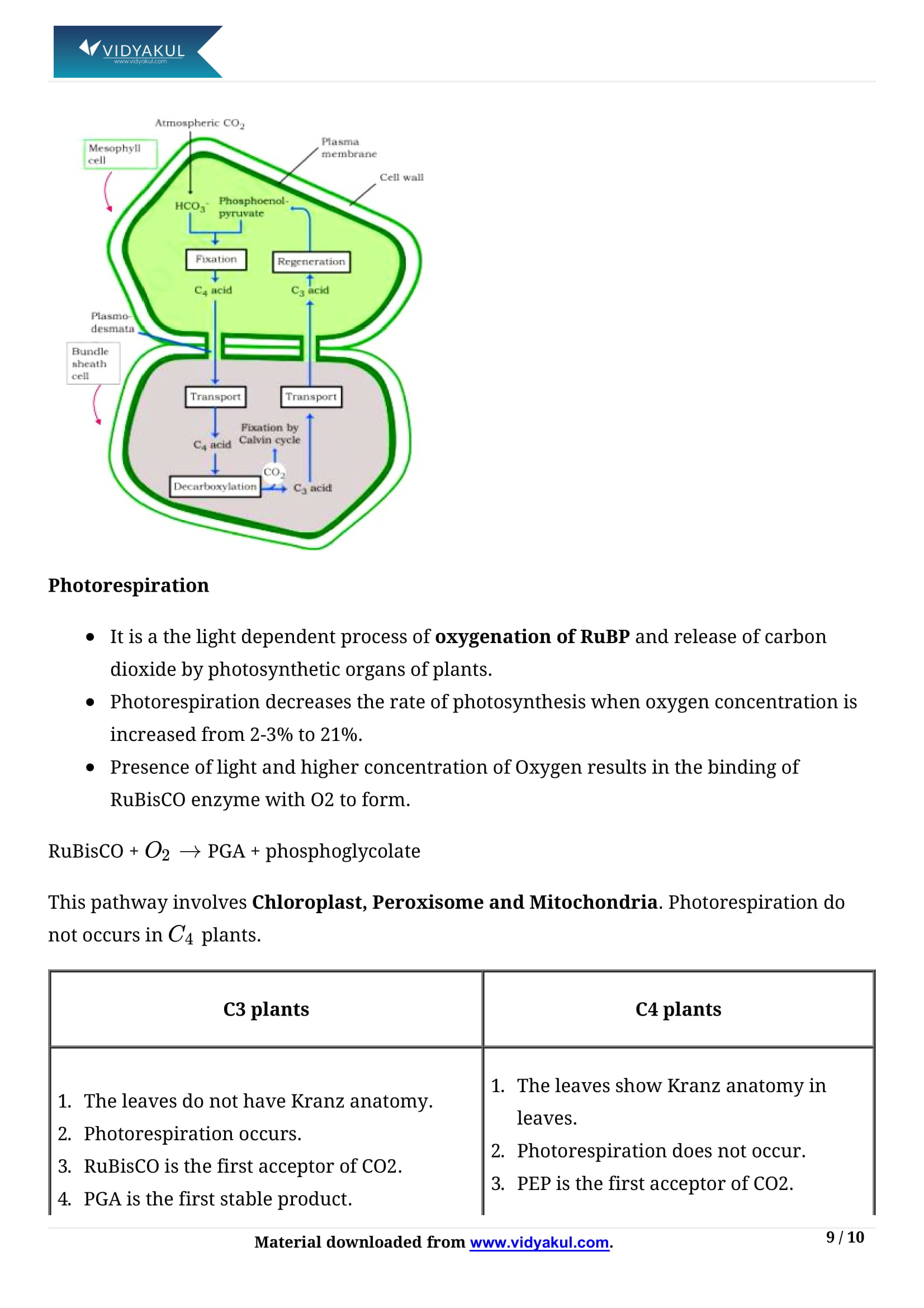 Photosynthesis In Higher Plants Class 11 Notes Vidyakul
